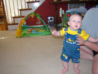 THIS HAS BEEN AN EXCITING WEEK. COLTEN HAS CUT HIS FIRST TEETH THEY OF COURSE ARE ON THE BOTTOM. HE IS ALOT HAPPIER NOW. HE HAS ALSO STARTED CRAWLING (WATCH OUT SISSY). HE CRAWLS ABOUT A COUPLE OF FEET THEN QUITS TO GET HIS STRENGH UP, SO ATLEAST WE'RE NOT FULL BLOWN POWER YET. WE NEW HE WASN'T GOING TO BE CONTENT TO JUST LAY AROUND.
